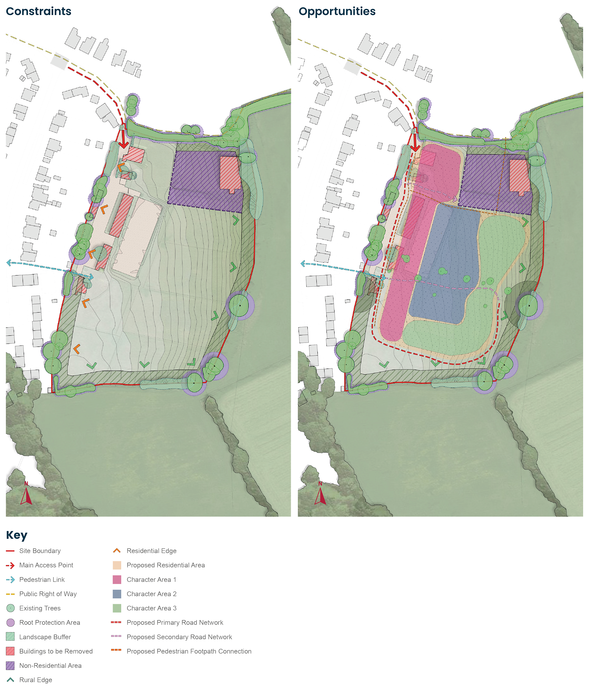The land is distinct from much of the surrounding open area given the sharply rising land on its northern and eastern boundaries, which also reduces its visibility from neighbouring land.