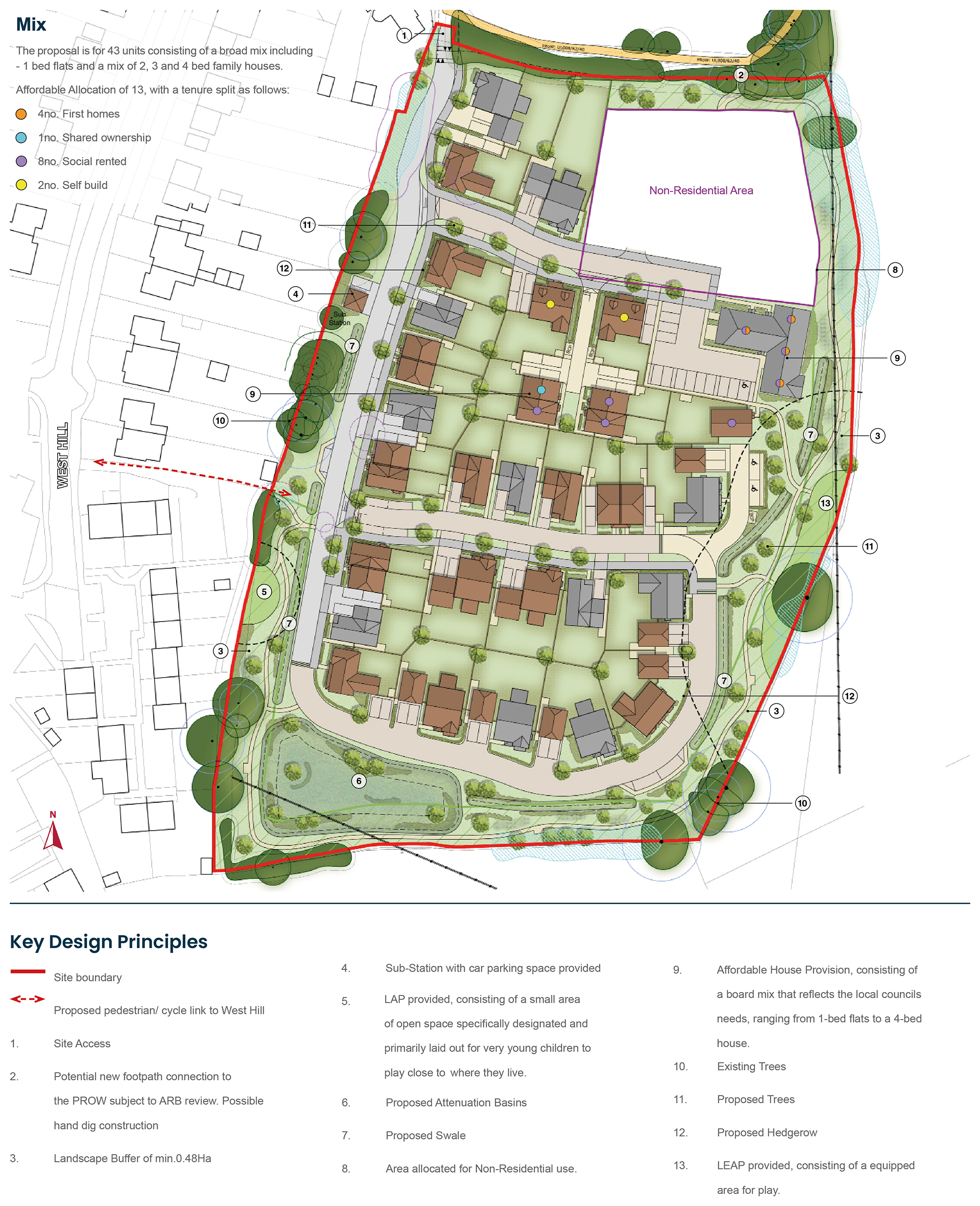 The proposed development site is situated within Elstead, a picturesque village within the Surrey Hills Area of Outstanding Natural Beauty. The site is situated adjacent to West Hill. The location of the allocation minimises the scheme’s impact on the surrounding countryside whilst providing much-needed housing within the village’s established development pattern.